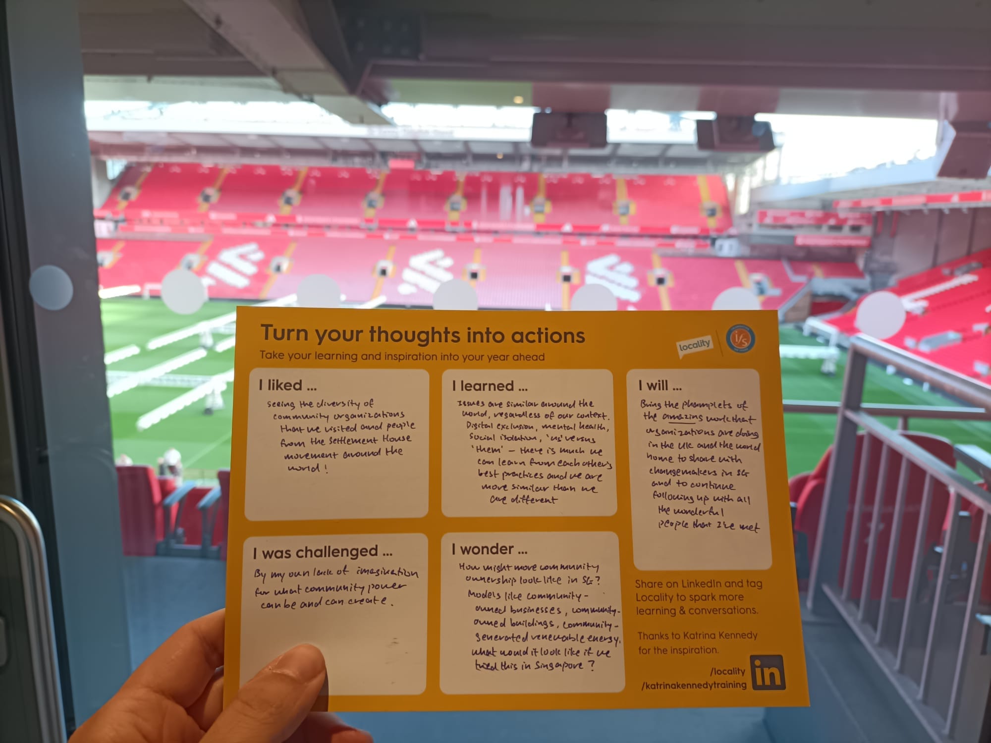 As a lifelong Liverpool FC fan, sitting inside Anfield Stadium reflecting on all this felt surreal. Here are some of the reflections I carried home, many thanks to Christopher Hanway and the Jacob Riis Neighborhood Settlement for enabling me to come on this trip!